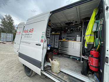 SkandMeks möjligheter på fältet förstärks nu ytterligare med en ny fullutrustad servicebuss. Förutom verktyg och förbrukningsmateriel så lagerhålls också de mest frekventa reservdelarna, filter, oljor etc. främst till Atlas Copcos portabla högtryckskompressorer men också till vissa andra.